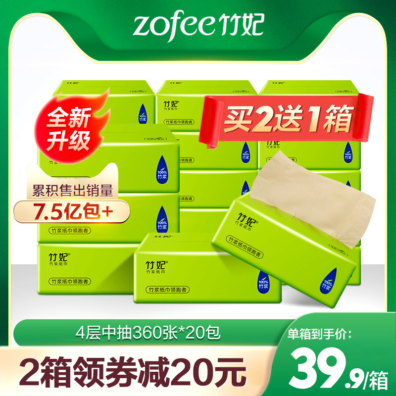 买2送1箱竹妃官网抽纸整箱中规格抽纸抽20包90抽全新升级竹浆纸热门设计联盟服务商