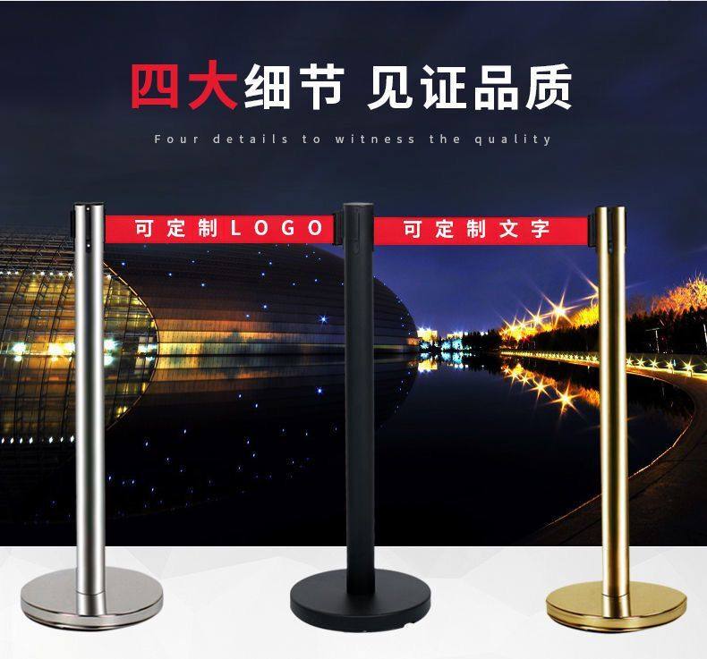 室外超市一大堂米线护栏酒店拉绳栏杆伸缩排队金色织带维护围栏拦热门设计联盟服务商