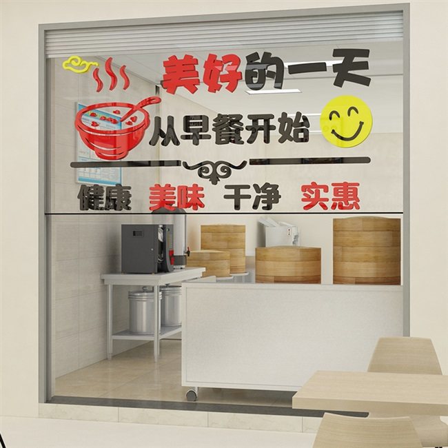 墙壁装修早点汤包馆小吃早餐店铺餐厅装饰贴画饭店背景亚克力墙。热门设计联盟服务商