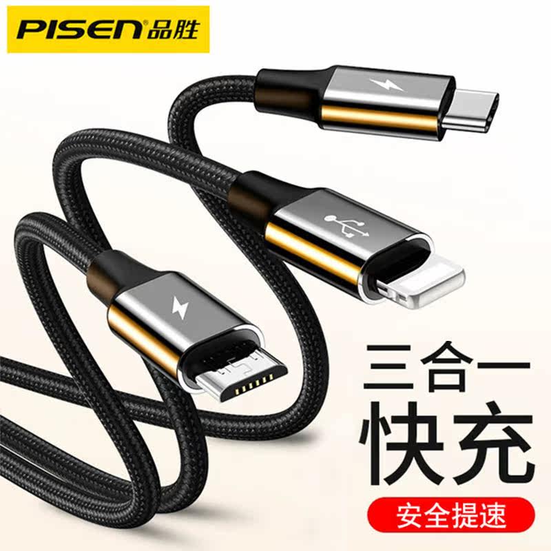 品胜苹果安卓小米华为三星Type-c通用三合一快充编织数据线充电线热门设计联盟服务商
