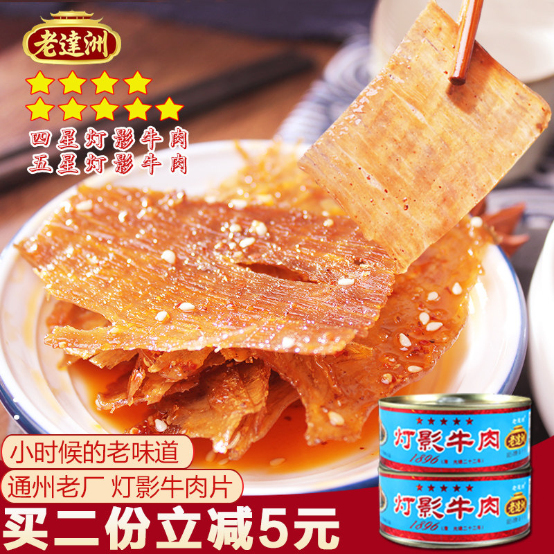 四川达州特产老达洲五星级灯影牛肉干片罐头装五香麻辣味零食80g热门设计联盟服务商