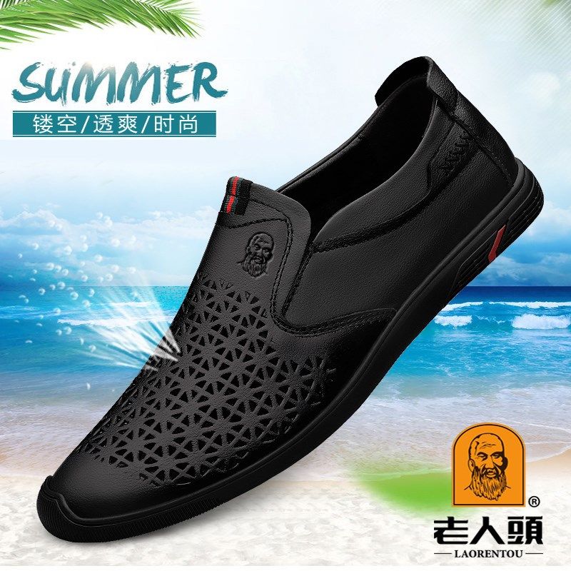 高品质老人头皮鞋男夏季男士商务休闲鞋透气软底软面皮一脚蹬镂空热门设计联盟服务商